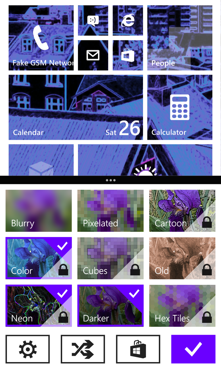 Tile Background delivers several filters to tackle those problems. Within seconds, your favorite holiday photo becomes a decent and stylish background image for your start sceen.